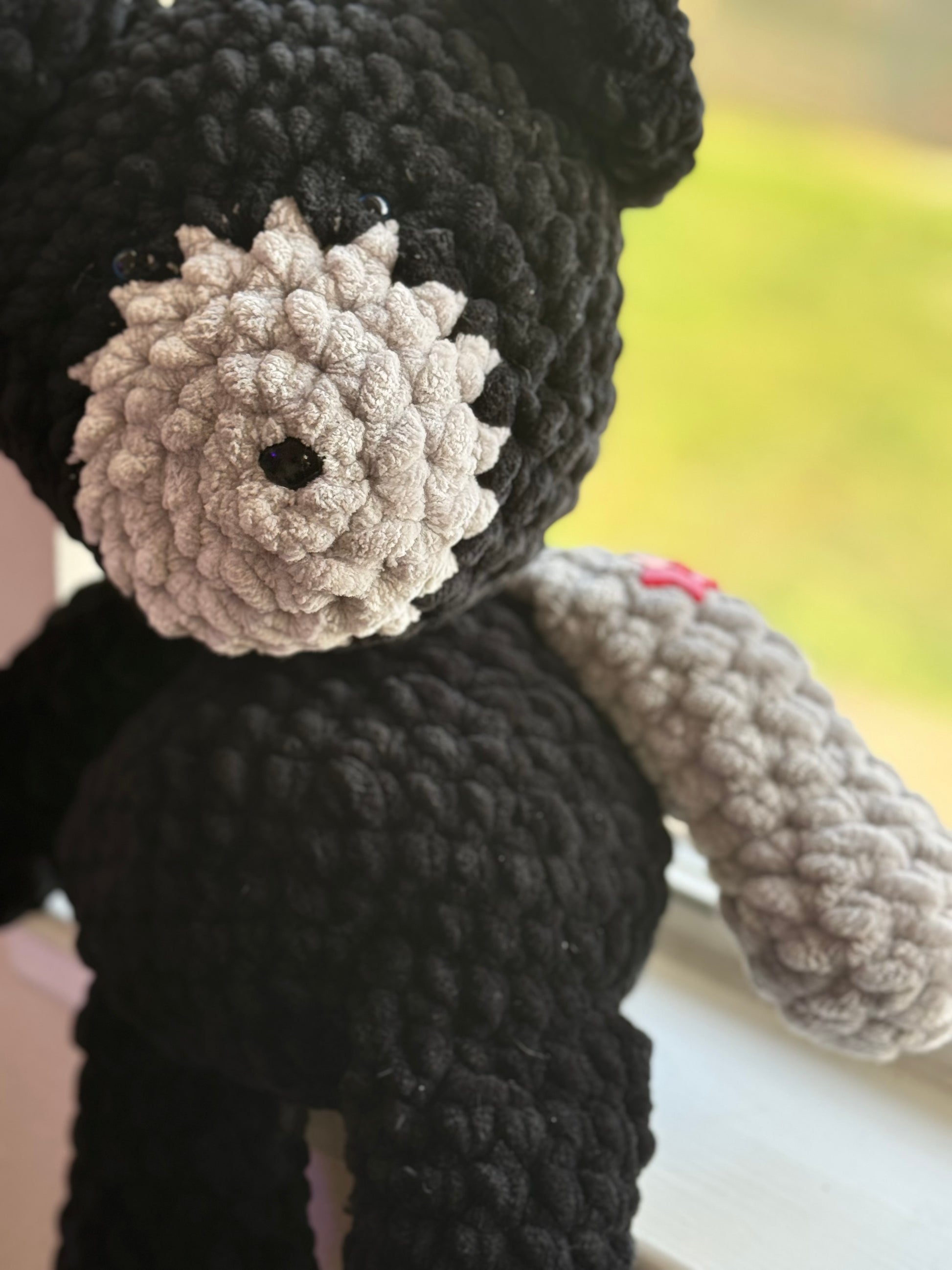 Ever want to give a hug to 110 year-old highly trained soldier? Bucky Bear is a snuggly crochet teddy bear. He is super soft and a perfect companion for a MCU movie night.